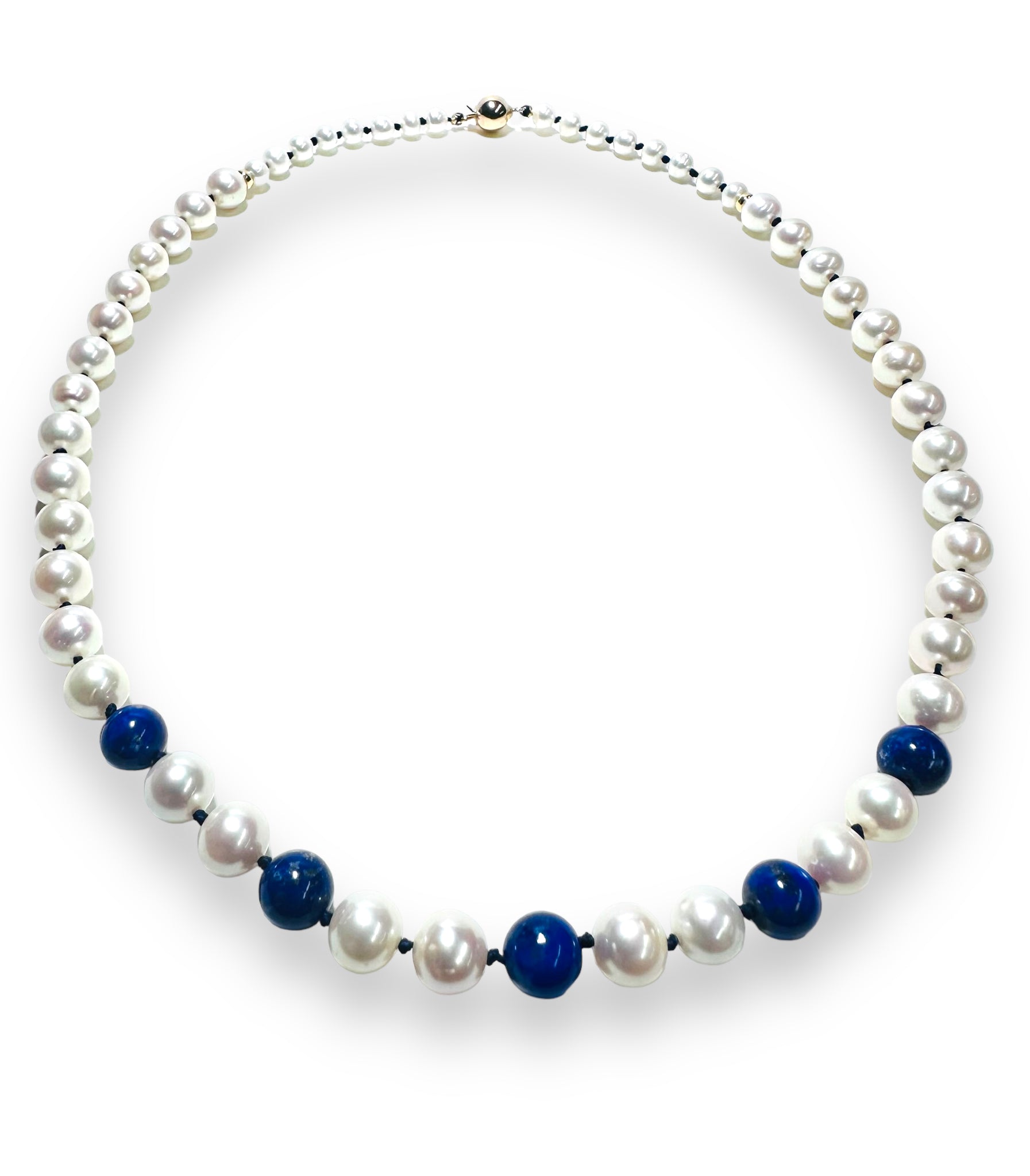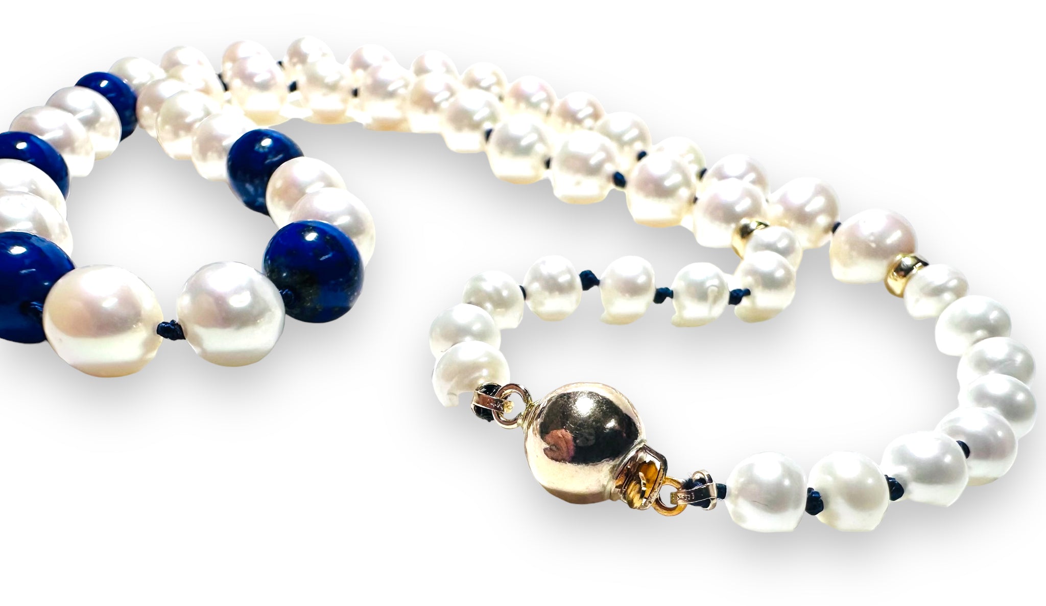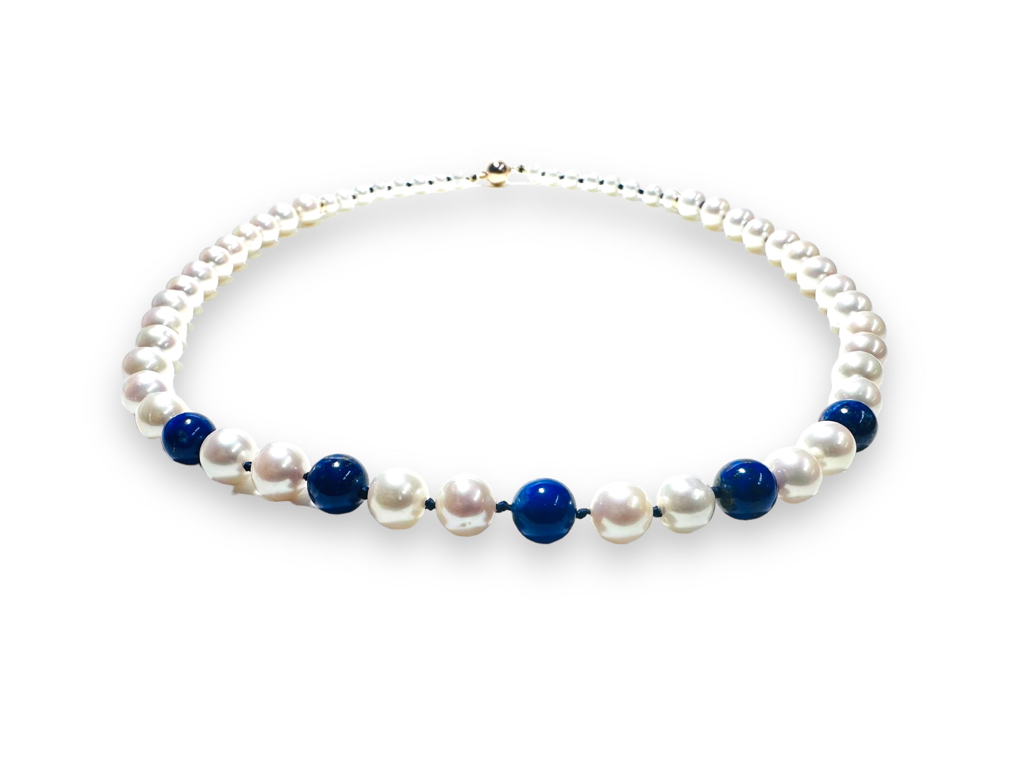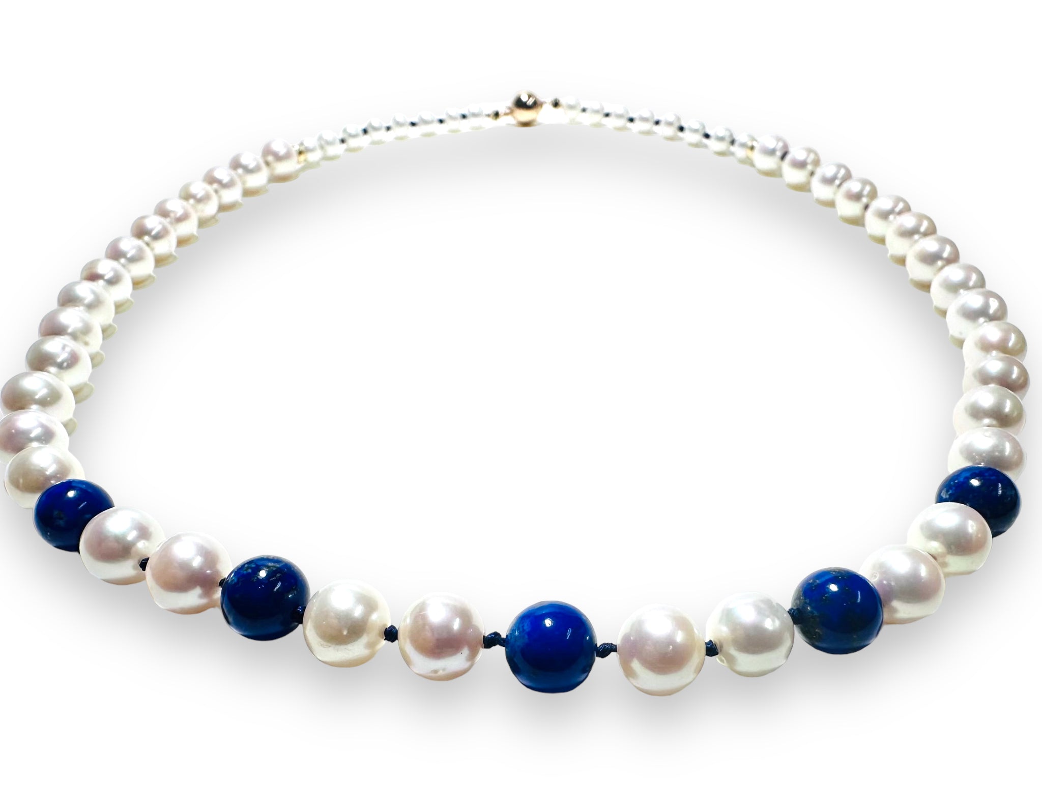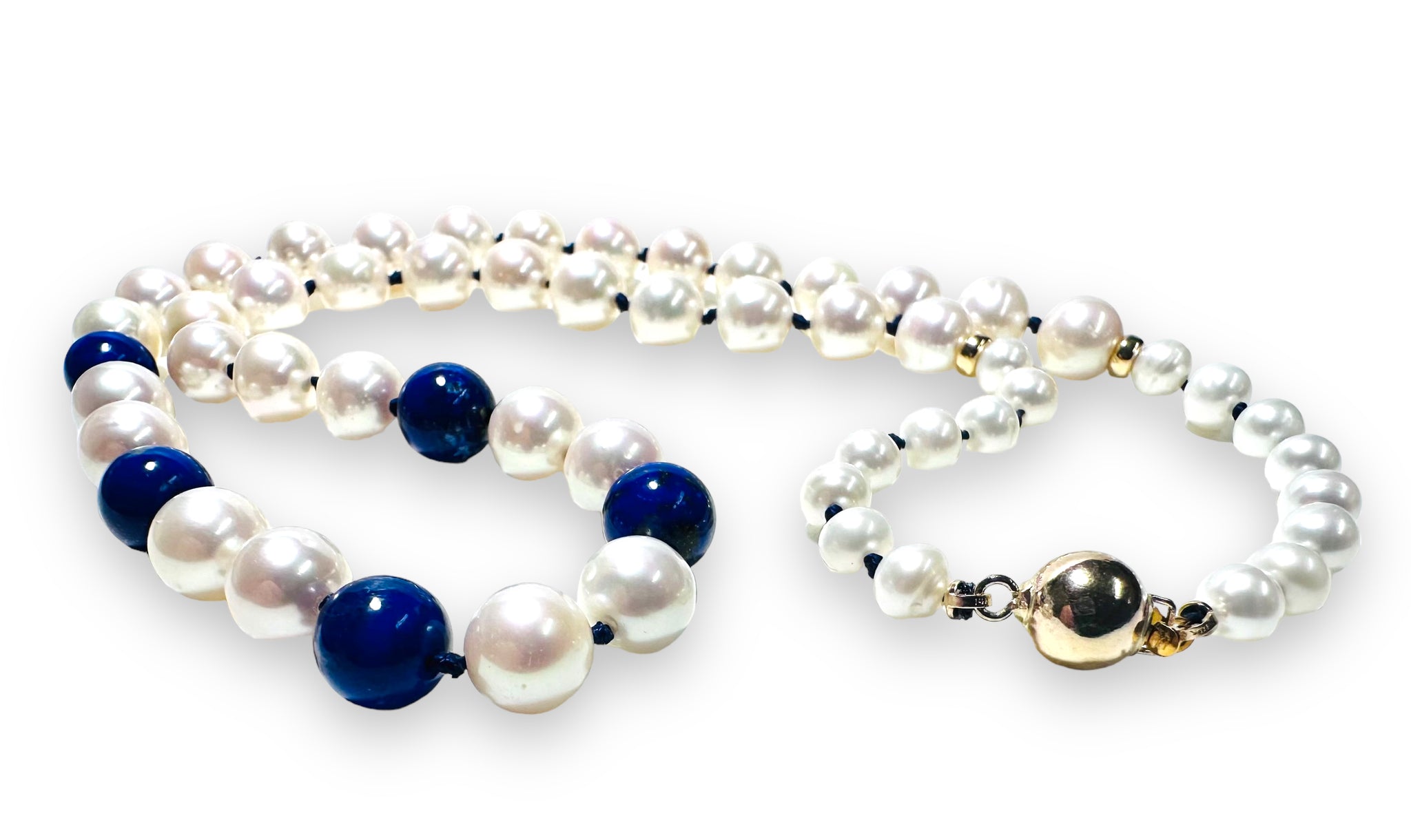 High quality round, white freshwater pearls and genuine high-quality Lapis Lazuli