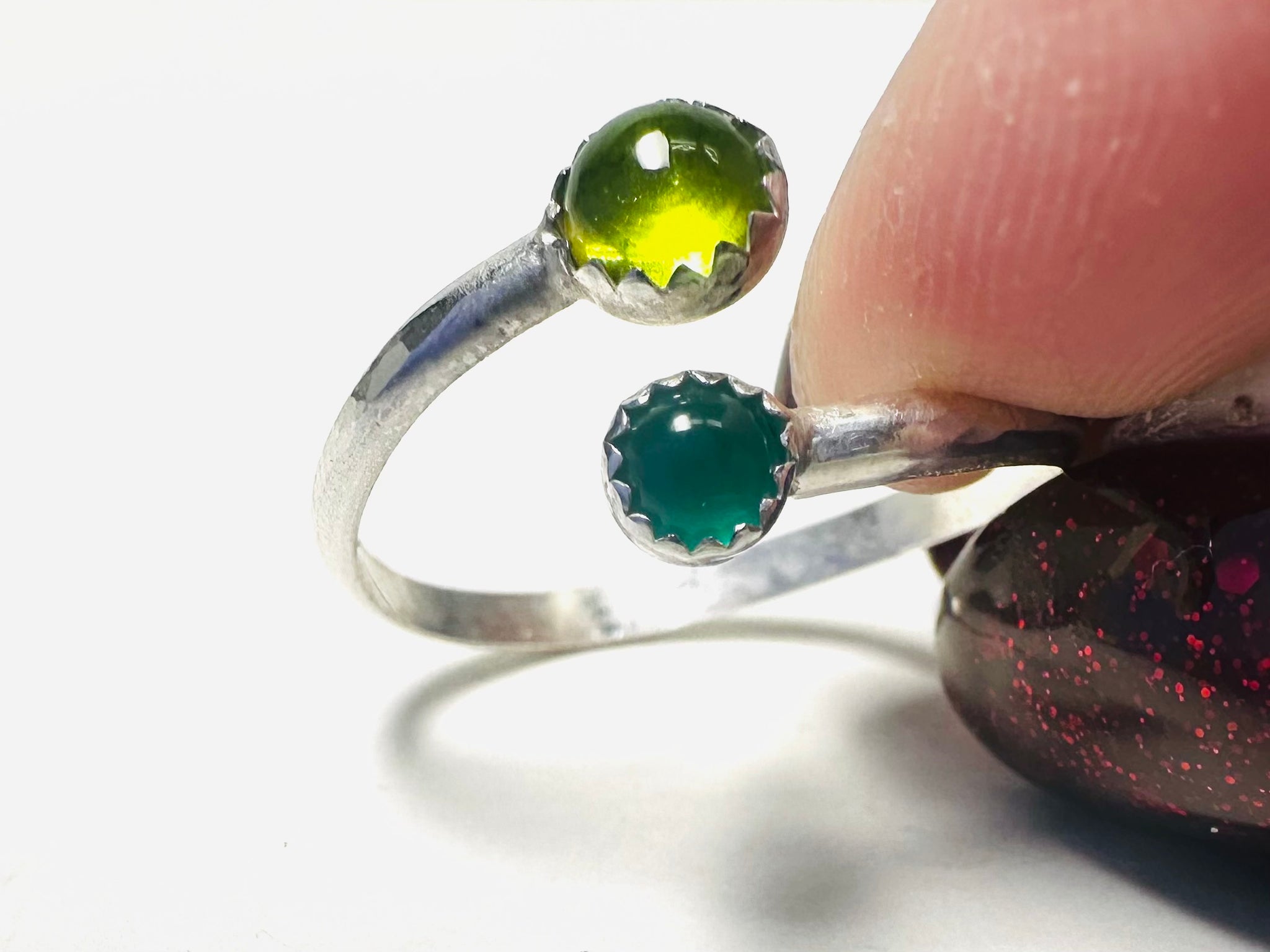 Elevate your everyday style with this stunning Bypass Ring, featuring genuine green chalcedony and vibrant peridot gemstones that catch the light beautifully. Each 4mm chalcedony stone is paired with a lustrous 5mm peridot, creating a harmonious blend of cool and warm green tones that complement any complexion. Crafted in lustrous sterling silver, this adjustable design fits sizes 6-9, making it the perfect gift or personal treasure that grows with you. The bypass silhouette offers a modern, sophisticated look that works equally well dressed up for special occasions or layered casually with your everyday rings. Genuine gemstones ensure lasting beauty and durability for years to come.