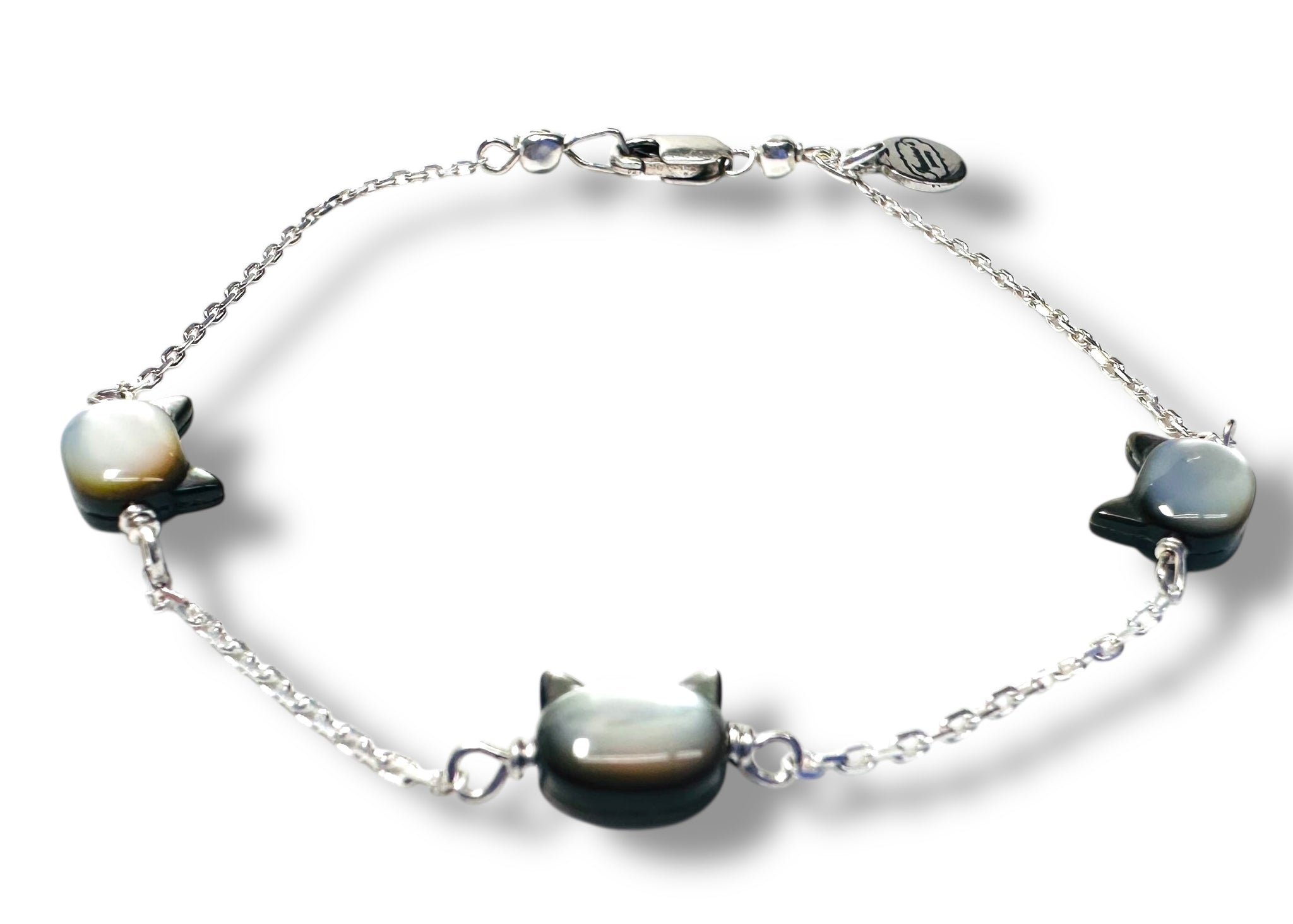 Stunning and delicate, our Cat Bracelet features tiny handcrafted pau shell cat beads on a high-quality Sterling chain. This small size bracelet measures at 6 inches, perfect for any cat lover. Elevate your style with a touch of feline elegance.