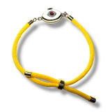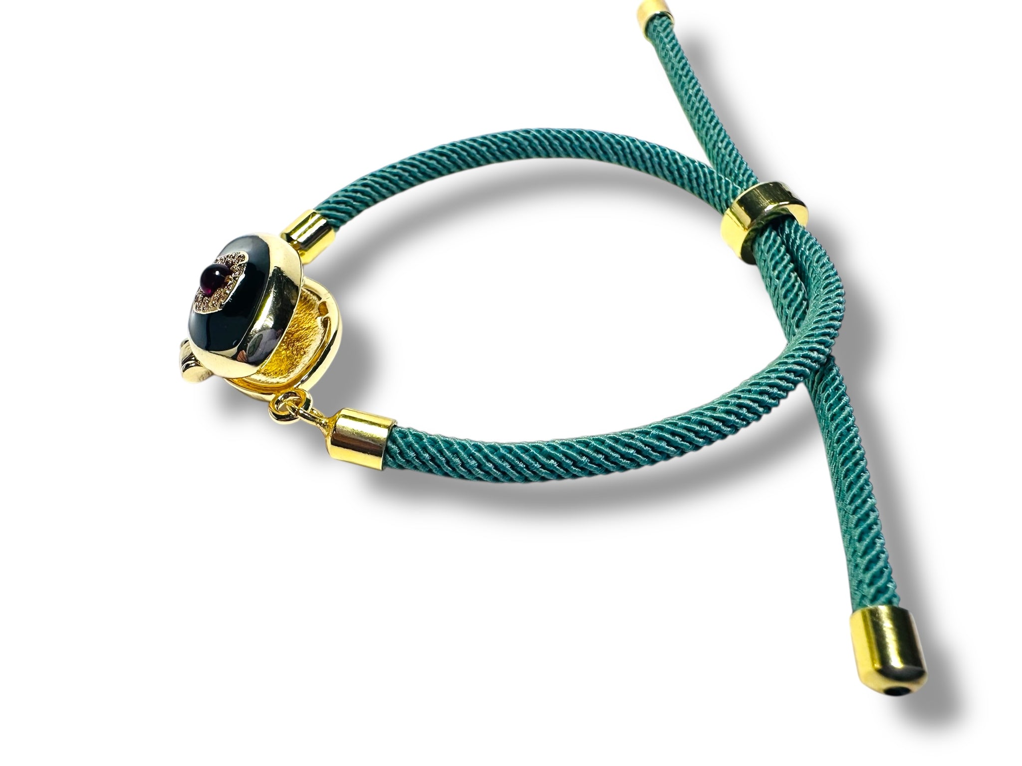 Silk cord bracelet has a slider bead to secure bracelet at any length.