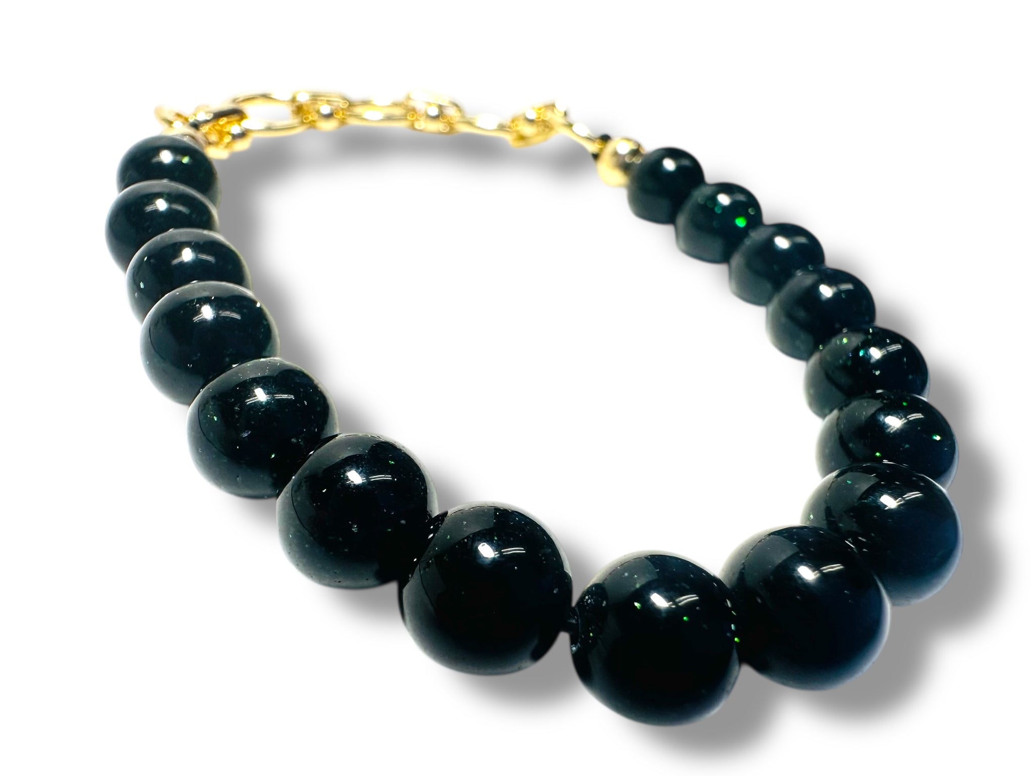 Genuine gemstone stretch bracelet using 5mm-12mm gemstone round beads.