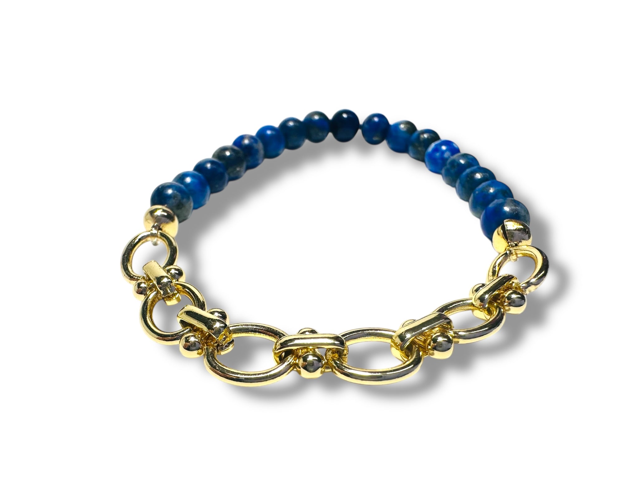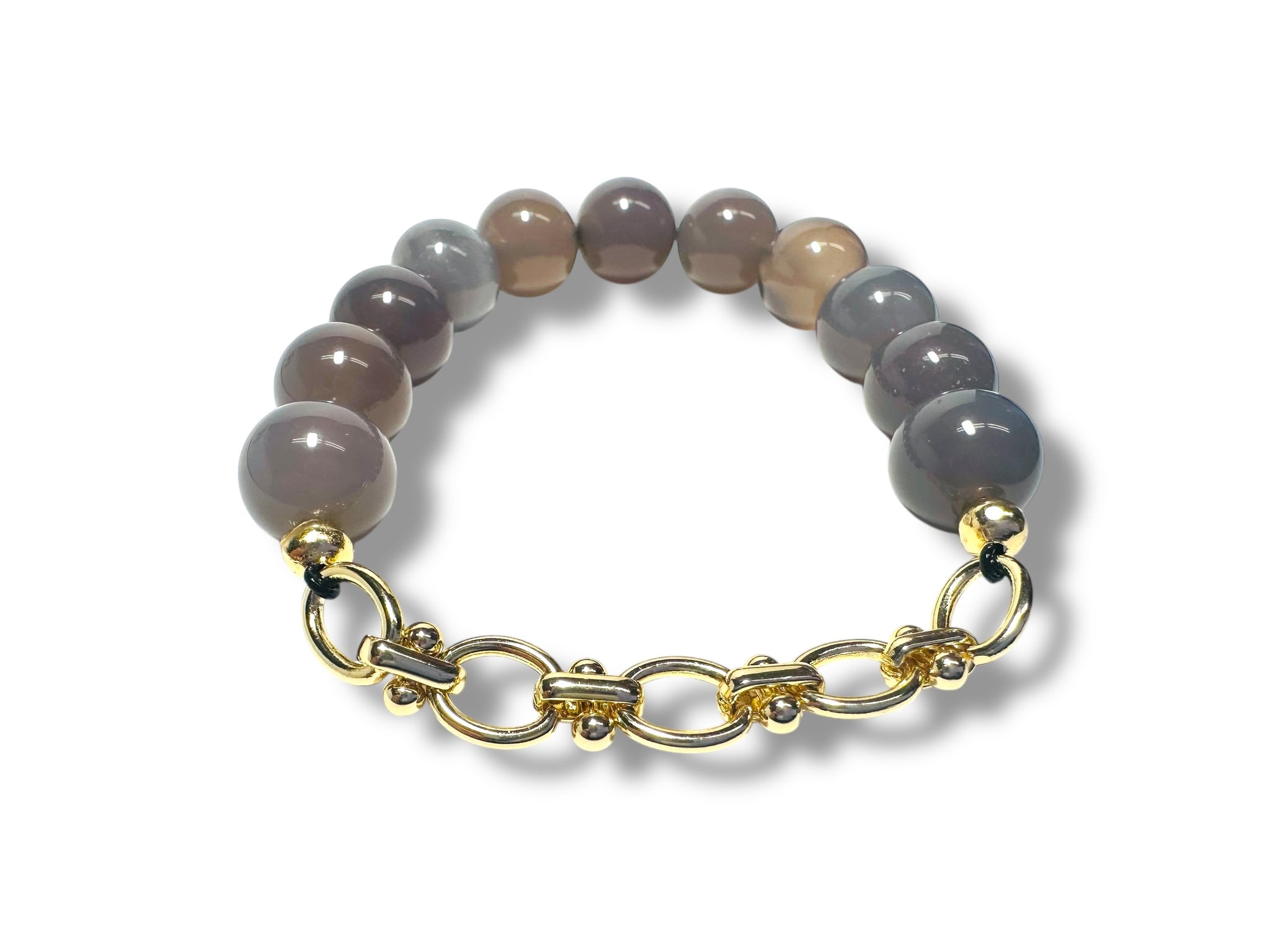 These stretch bracelets with chain give an elevated accent to the traditional gemstone stretch bracelets adding a little bit of elegance.