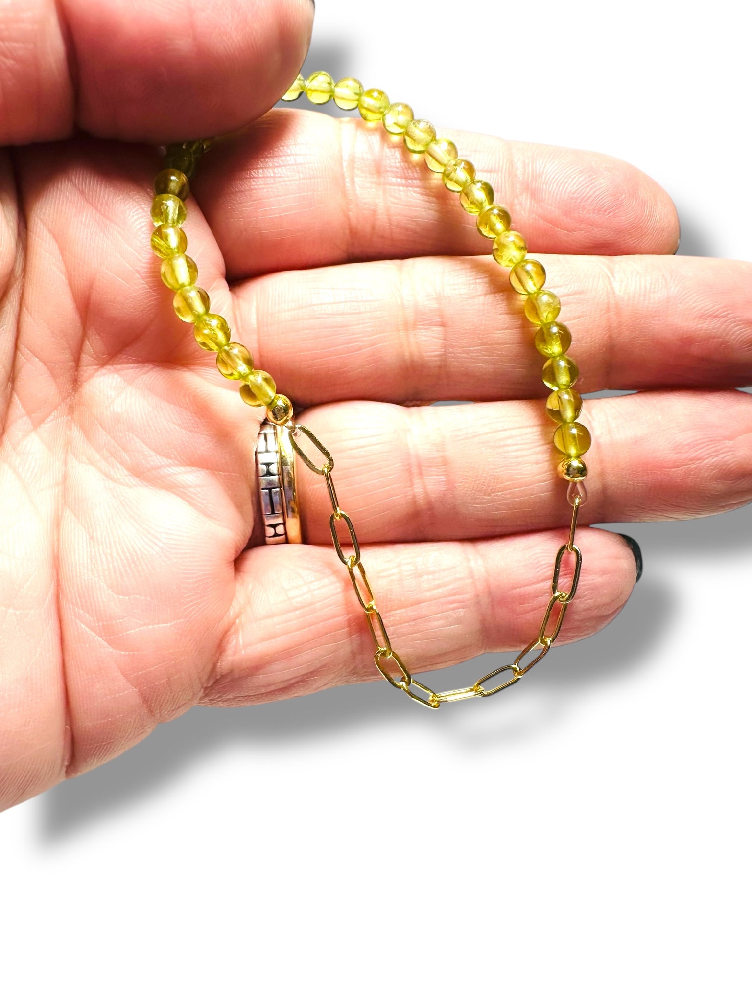 Expertly crafted with genuine gemstone beads measuring 5mm, this bracelet is the perfect combination of style and versatility. At approximately 7.5 inches, it’s the ideal fit for most wrists. The addition of a sterling or gold-plated chain accent adds a touch of elegance to this already stunning piece.