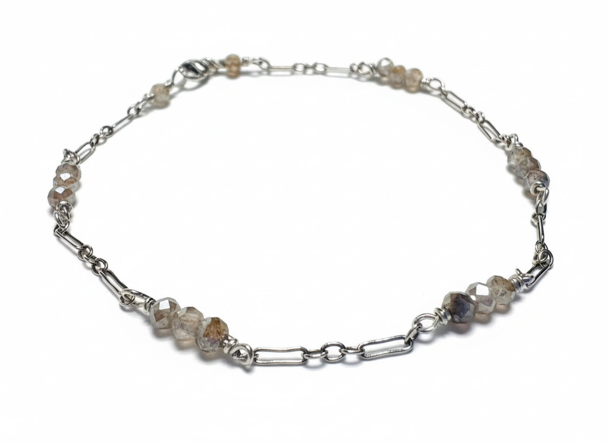 Dainty Gemstone Bracelet, Gemstone Bead Chain, Wire Wrapped Bracelet