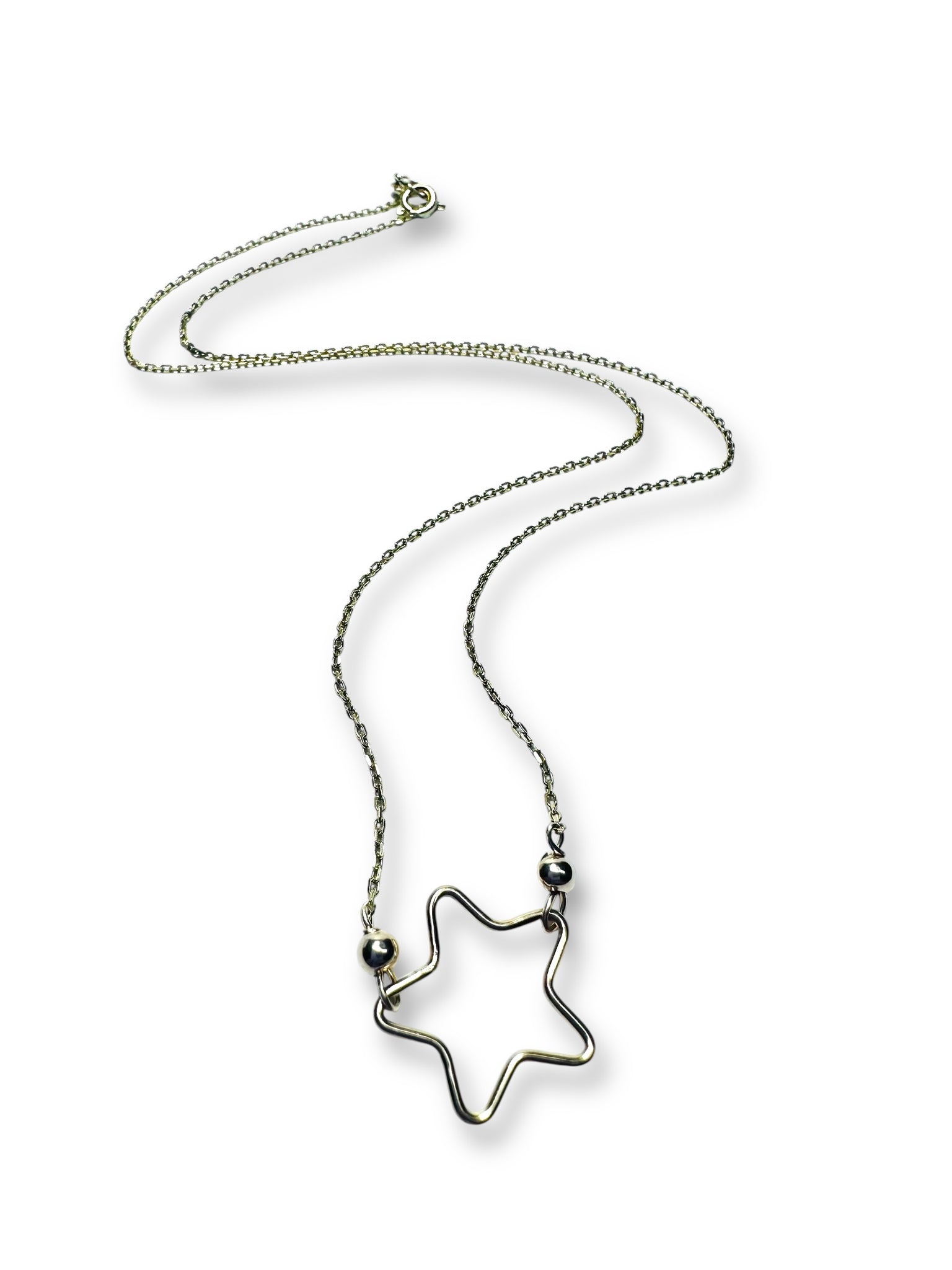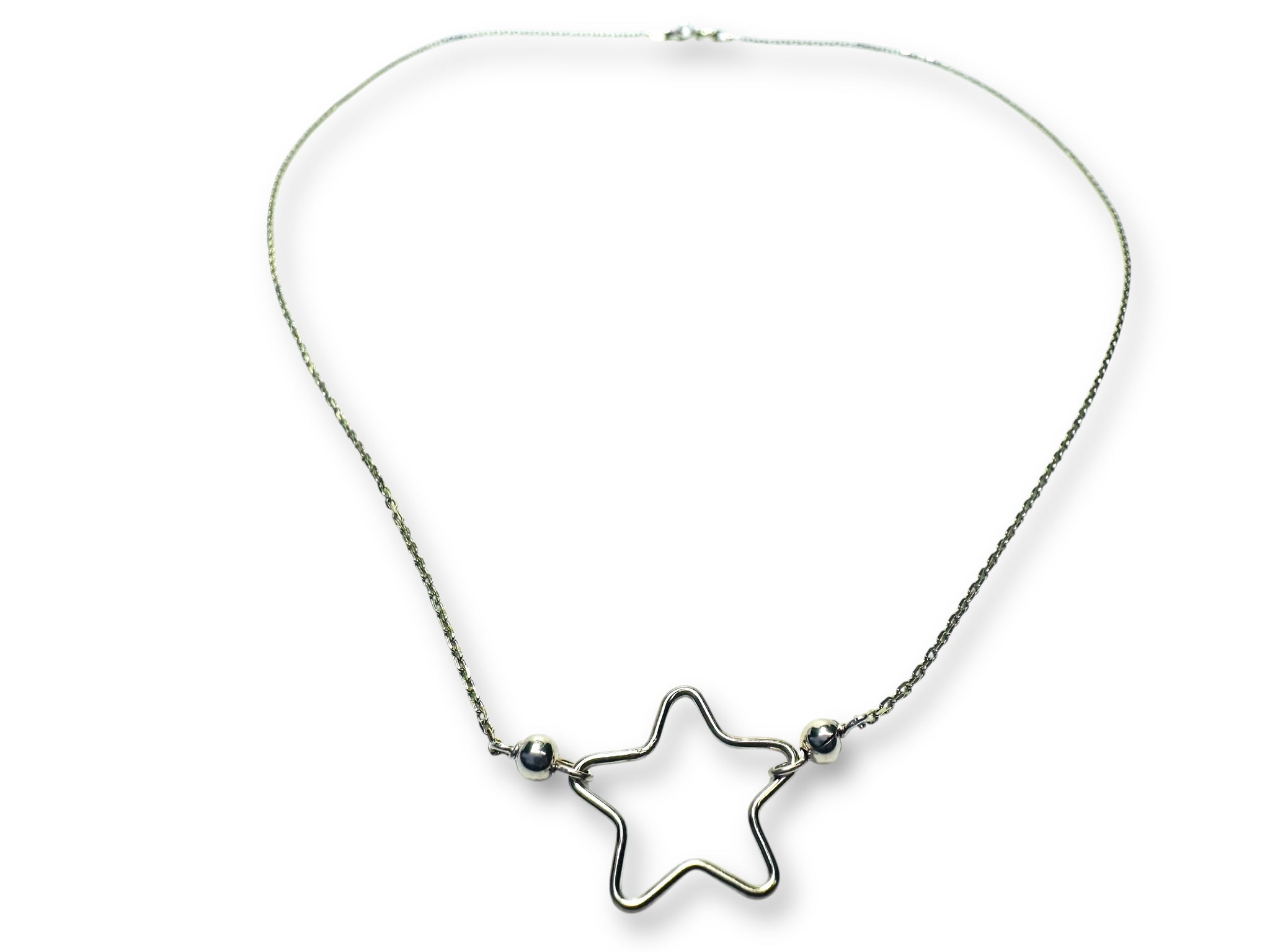 A durable and versatile necklace that effortlessly elevates any outfit. Made with expert craftsmanship, this necklace boasts a sturdy hand soldered star shaped pendant ring, seamlessly blending style and functionality. it's the perfect length for everyday wear.