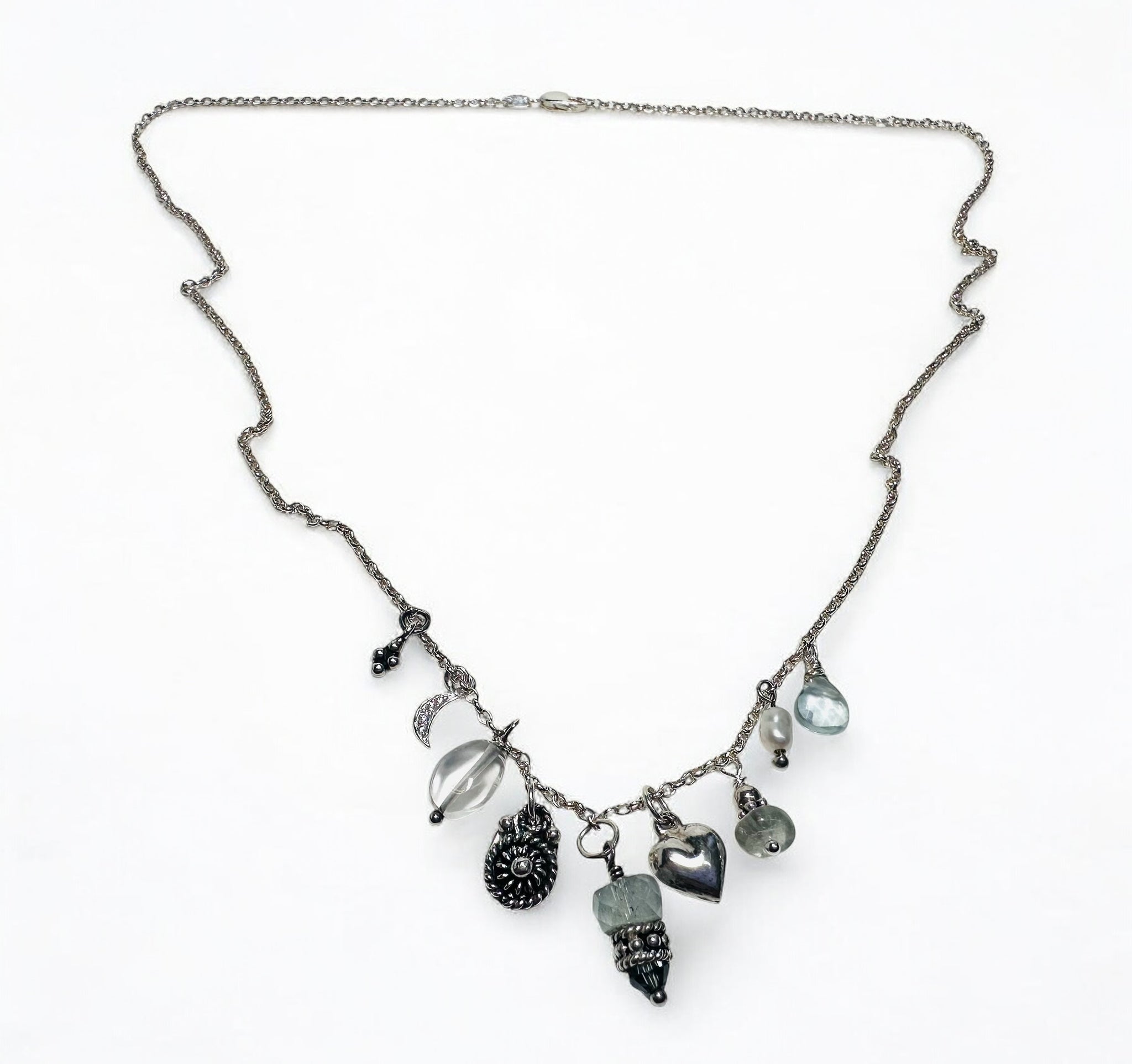 Gemstone Charm Necklace/Silver Charm Necklace/March Birthstone