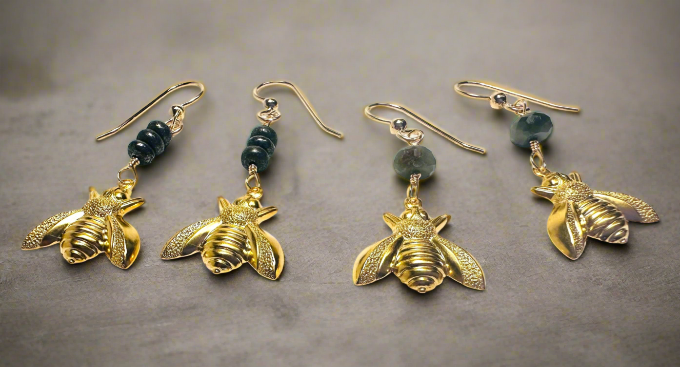 Bee Earrings/ Gemstone and Golden Bee Charm Earrings