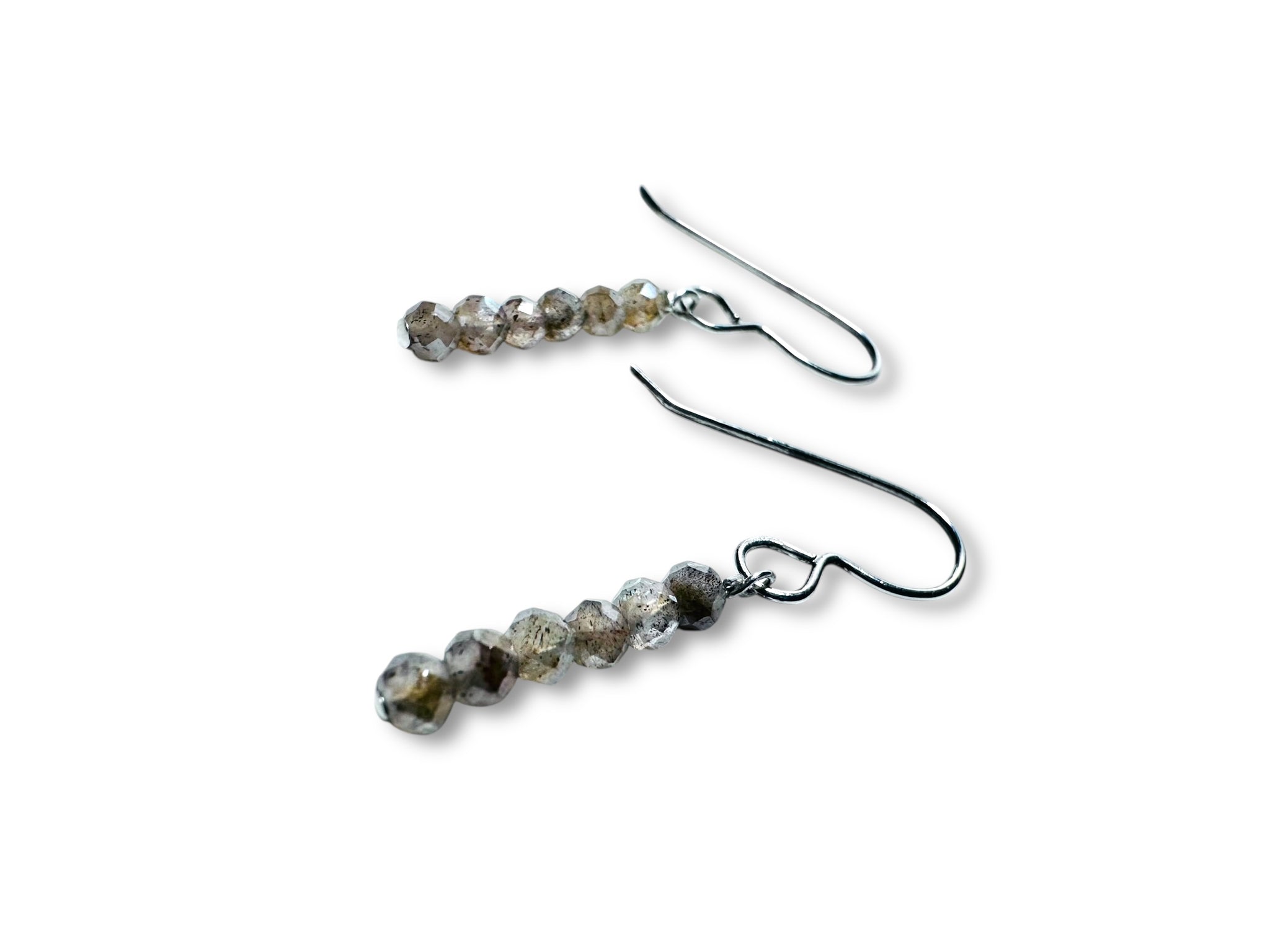 These 1-inch-long minimalist bar earrings feature metallic coated moonstone rondelle beads, offering a unique aesthetic that combines elegance with simplicity. The moonstone is believed to enhance intuition and promote emotional balance, making these earrings not only a stylish accessory but also a potential tool for inner harmony.