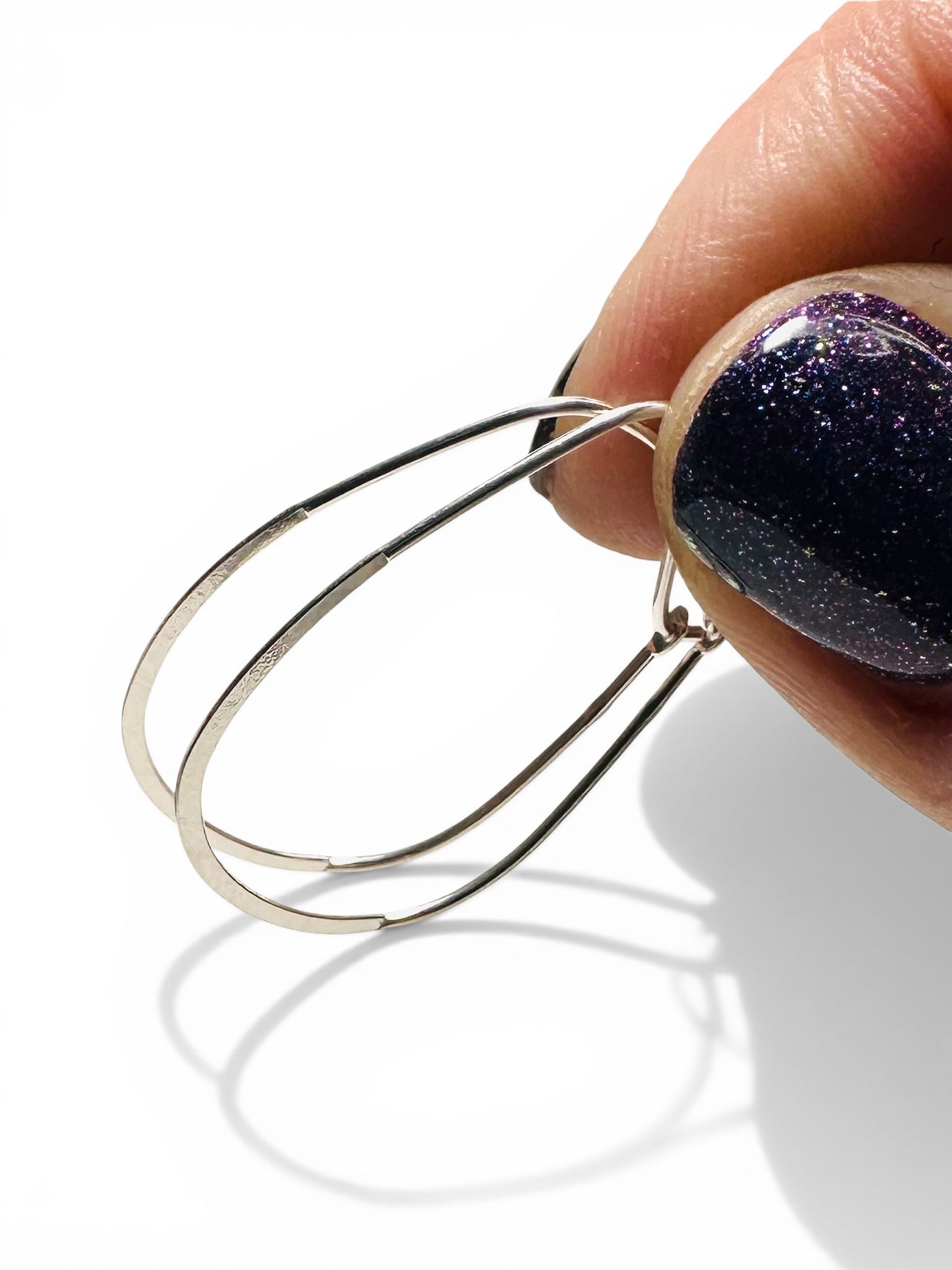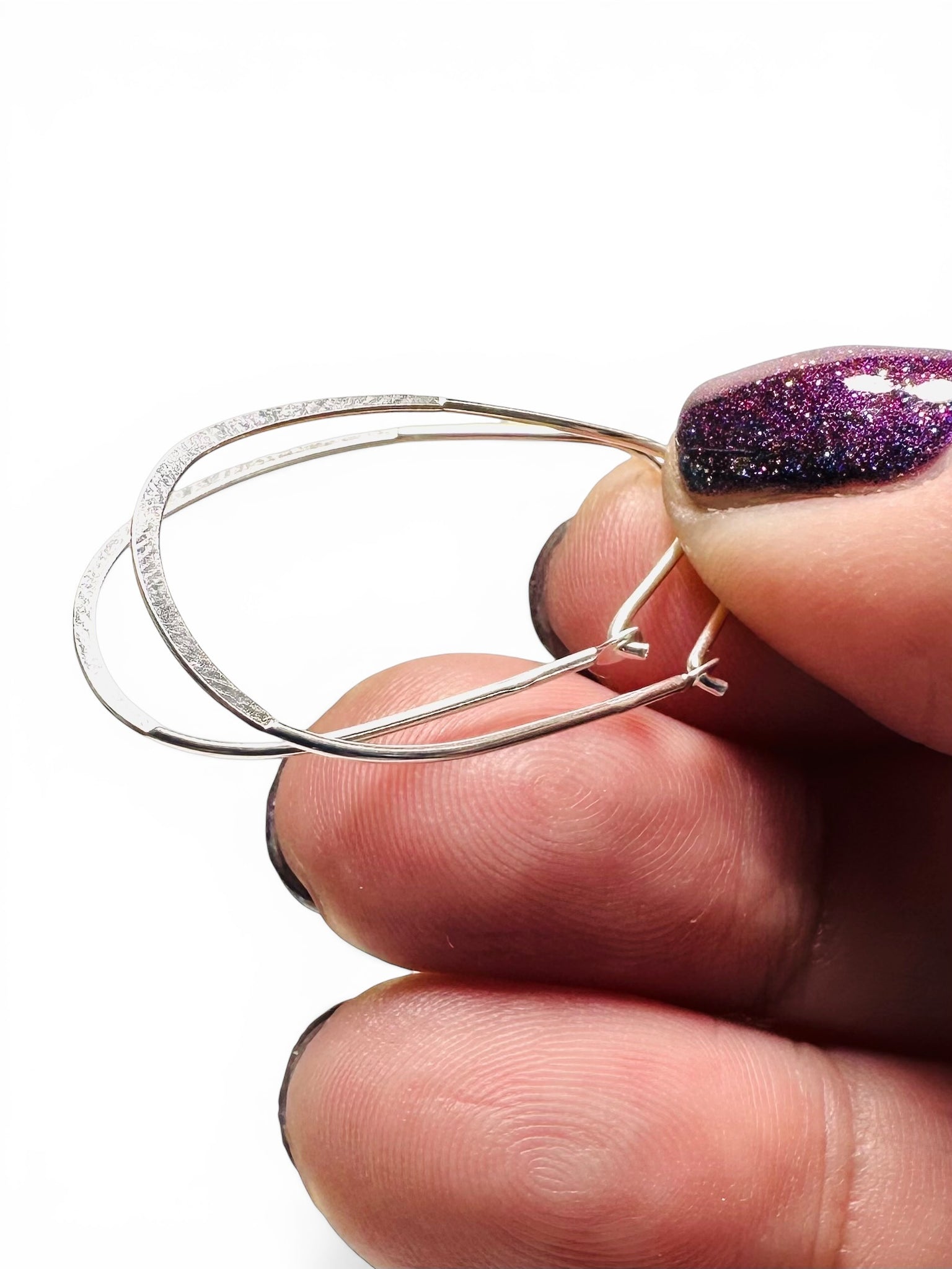 Dainty oval hoops. Expertly crafted from high-quality silver, these Silver Hoops are the perfect addition to any jewelry collection. With their sleek design and versatile style, they seamlessly transition from day to night. Elevate your look with these timeless and elegant hoops.