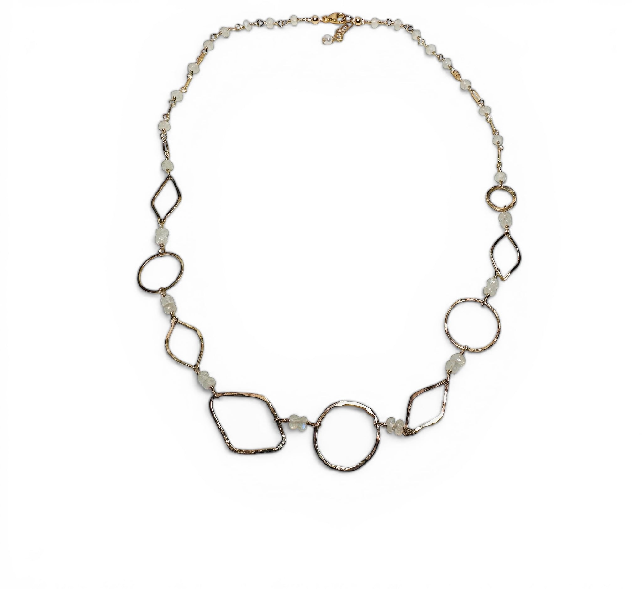 Elevate your accessory game with this dazzling Gold Fill and Moonstone Necklace! Measuring 17”-18”, it’s the perfect length for adding a touch of whimsy to any outfit. The hand-cut moonstone beads dance between gold fill links like they’re at a celestial soirée—who knew jewelry could moonwalk? Shine on!