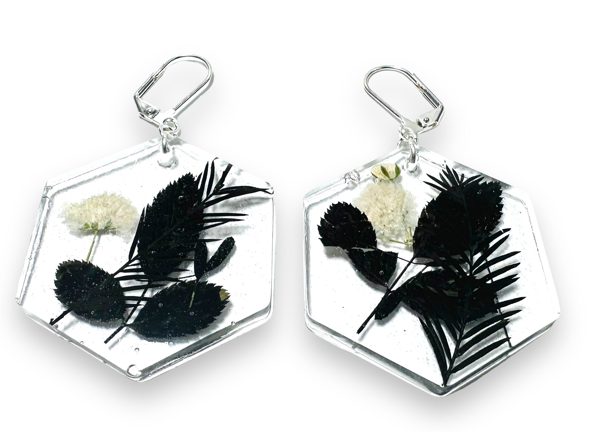 Halloween Collection-Pressed Flower Earrings/Real Flower Earrings/Resin Flower