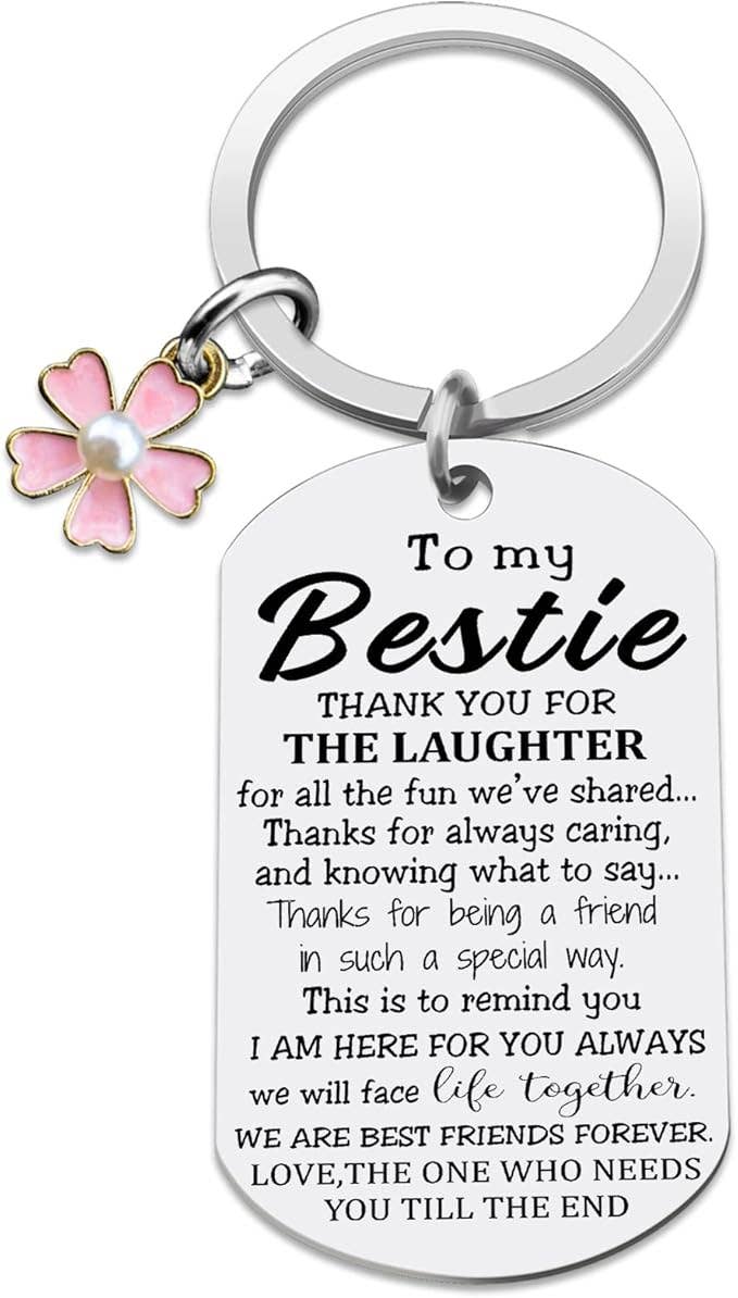 Stainless Steel “To My Bestie” Keychain with Flower Charm