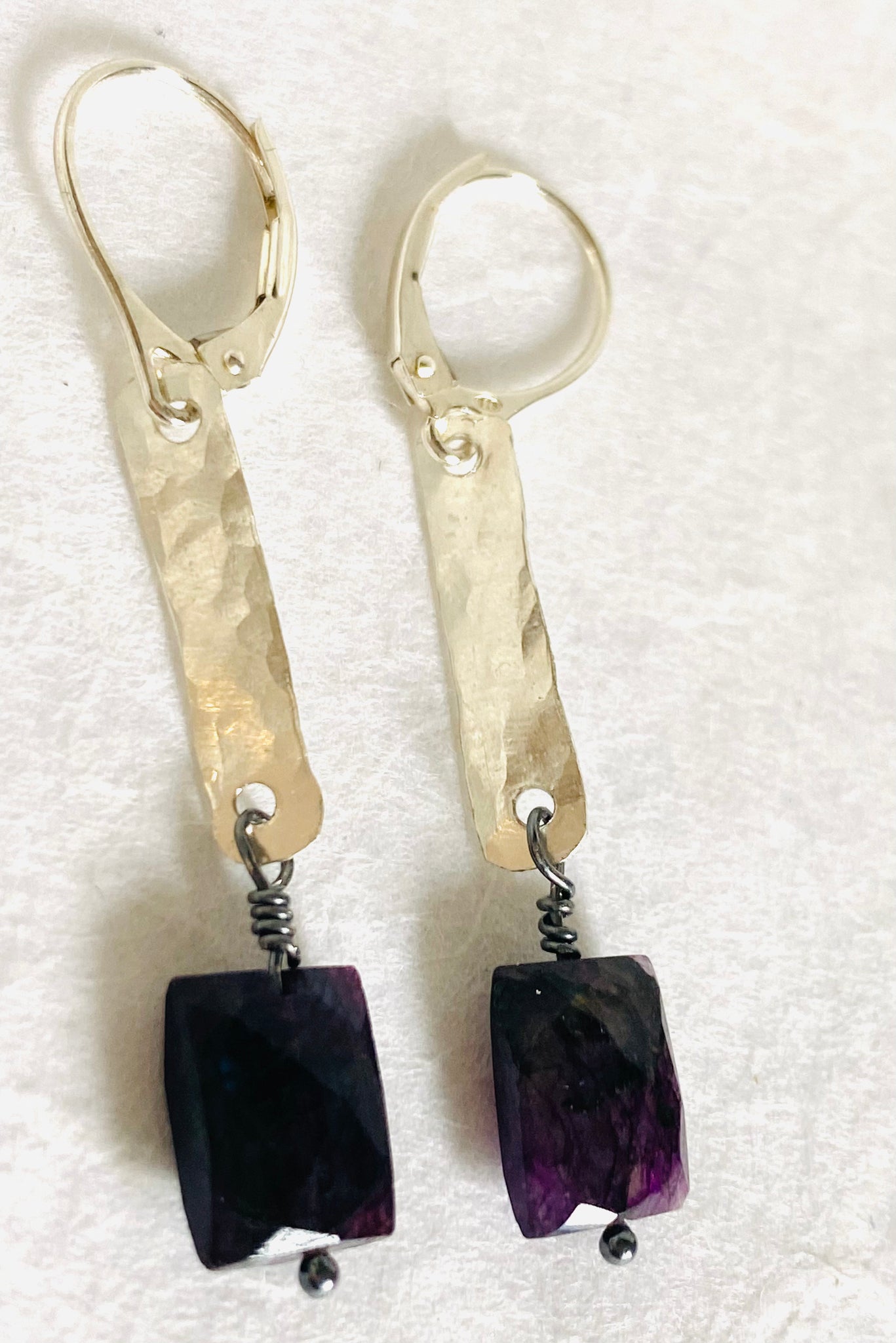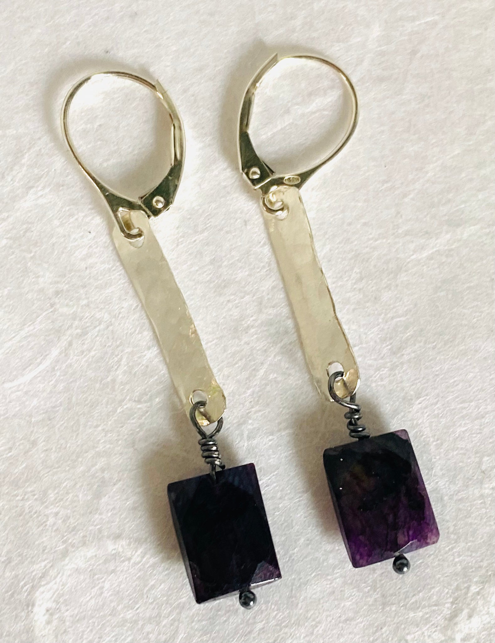 Gorgeous purple gemstone earrings- possibly dyed Labradorite in gorgeous flash of dimension.