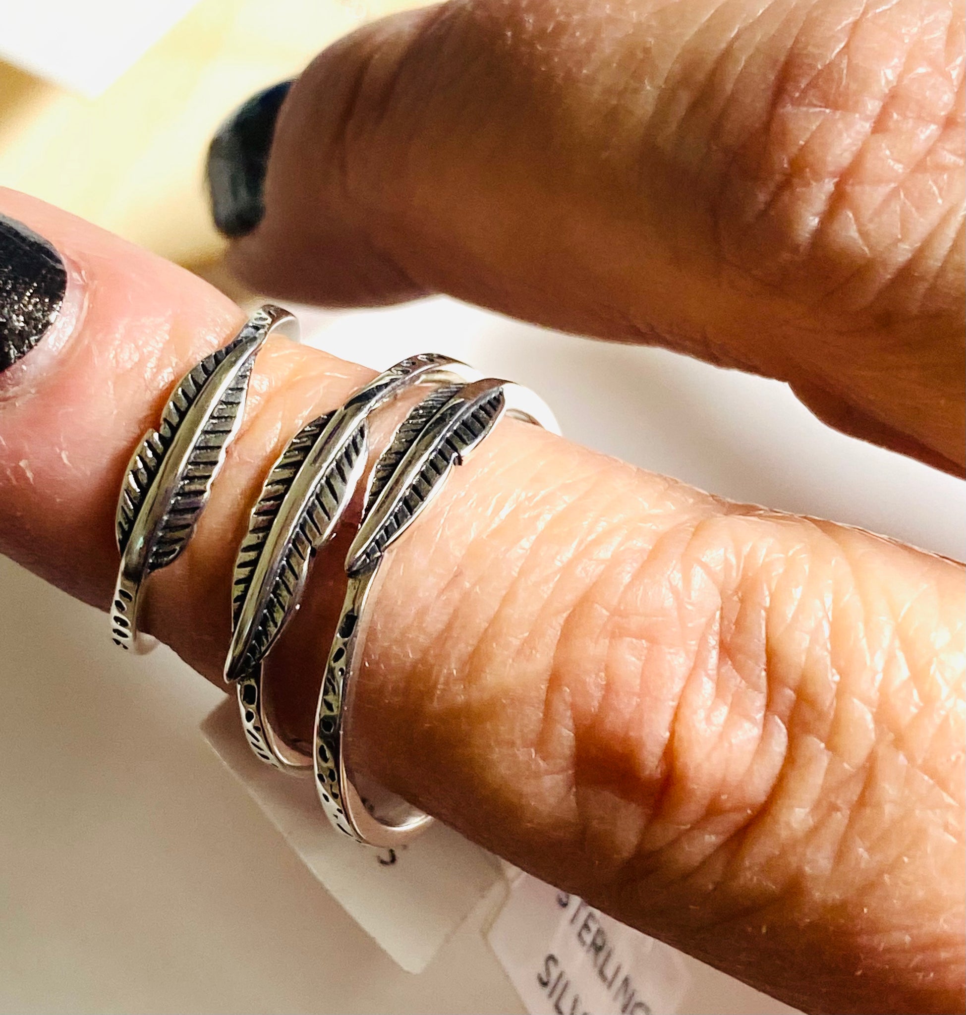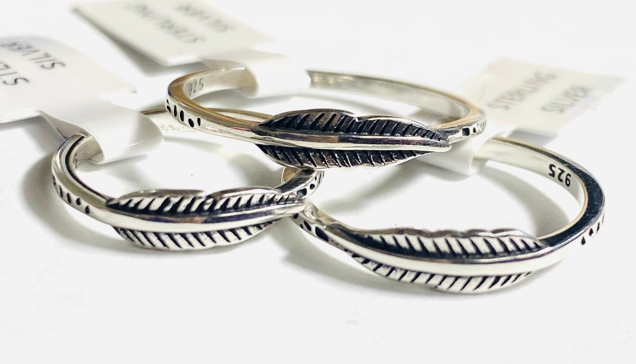Sterling Silver Feather Ring, Feather Stacking Ring,
