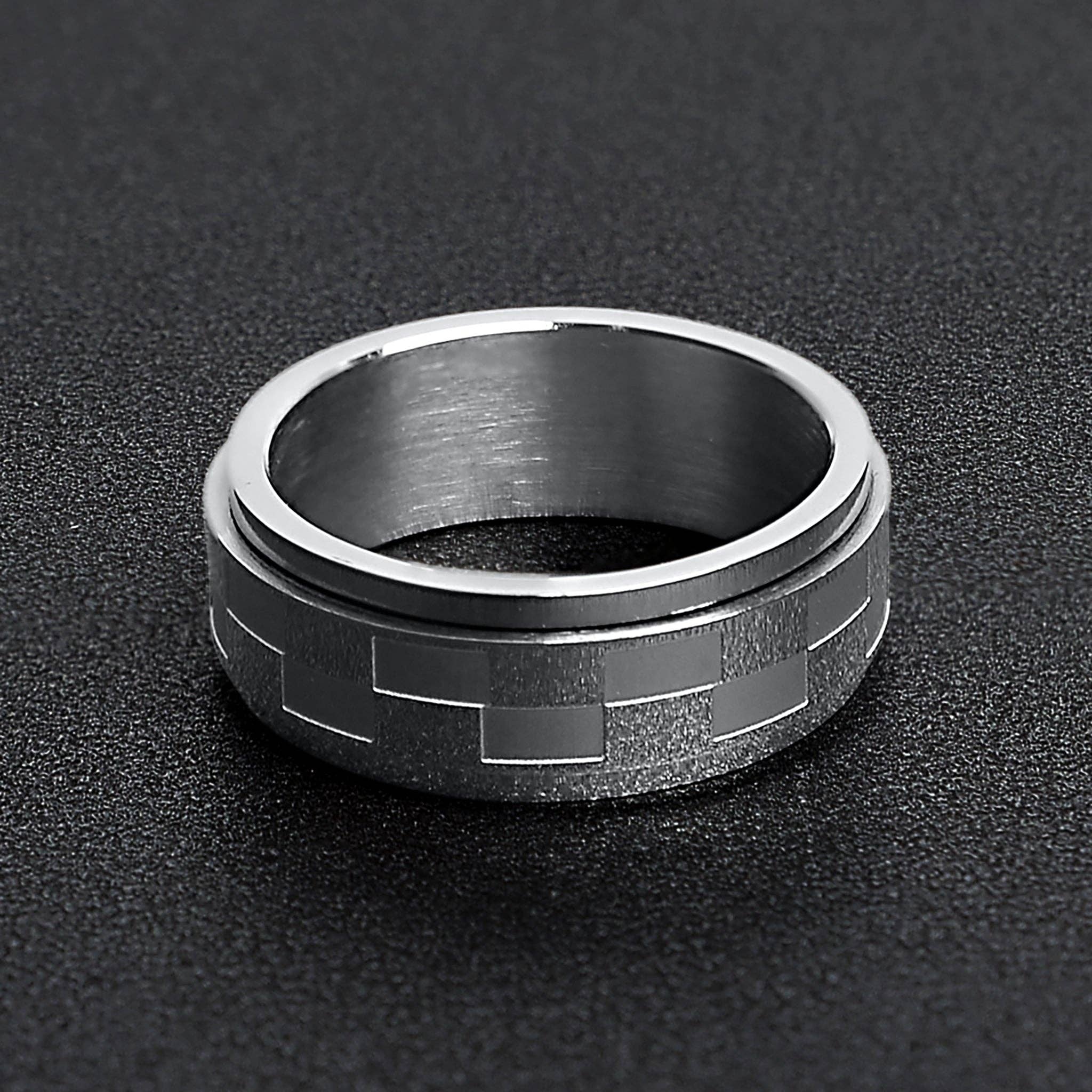 Steel Spinner Ring - Checkered Pattern