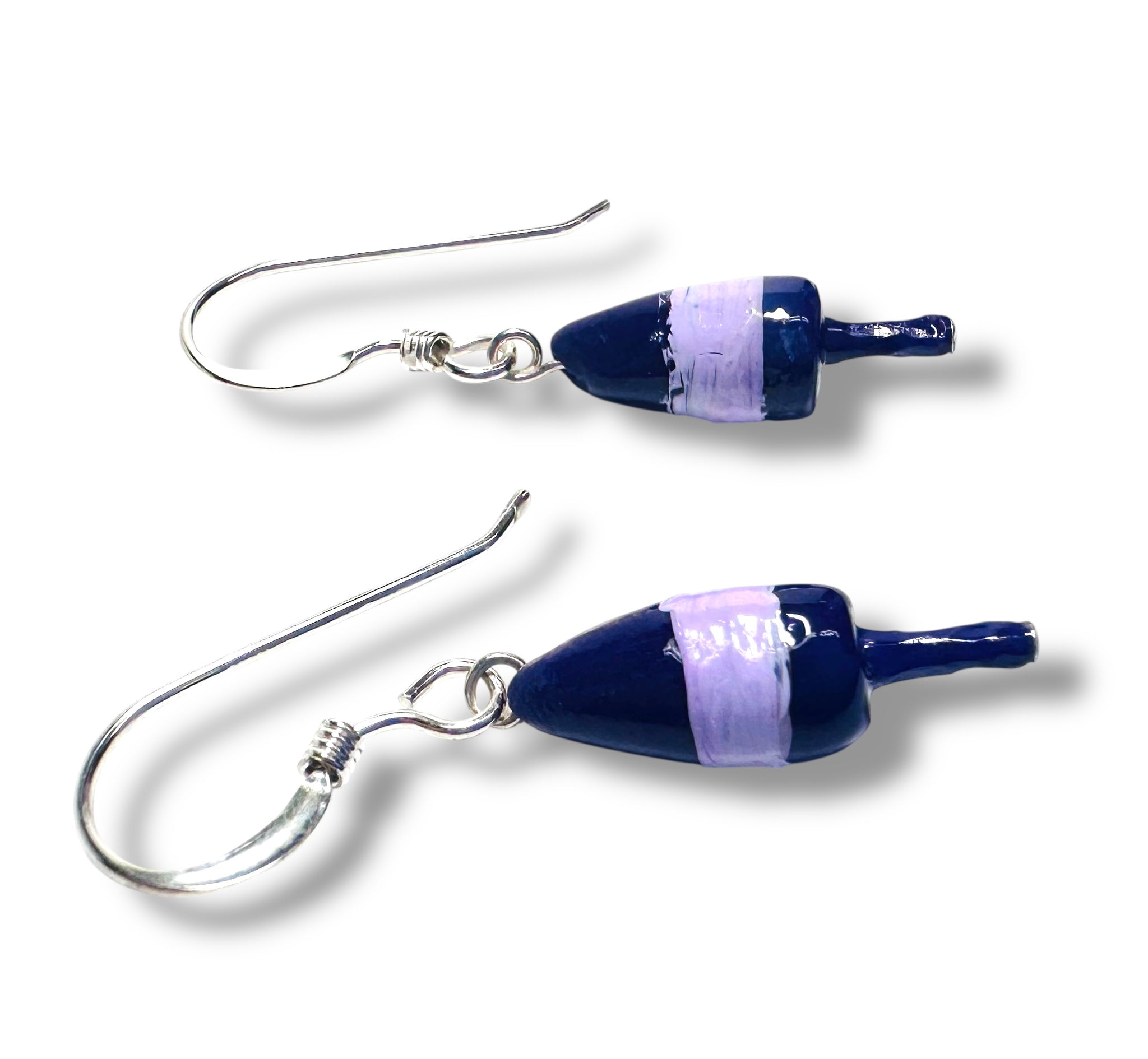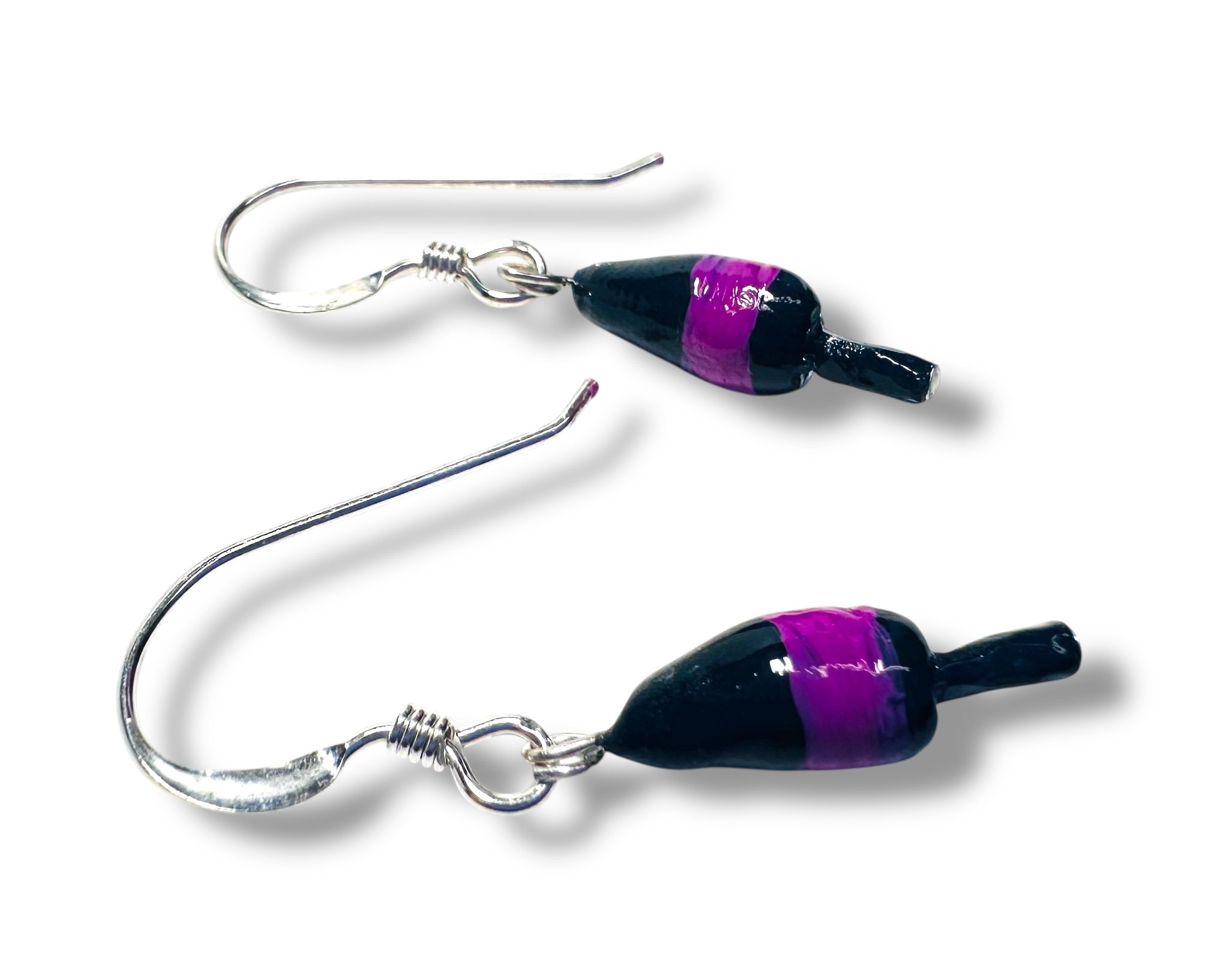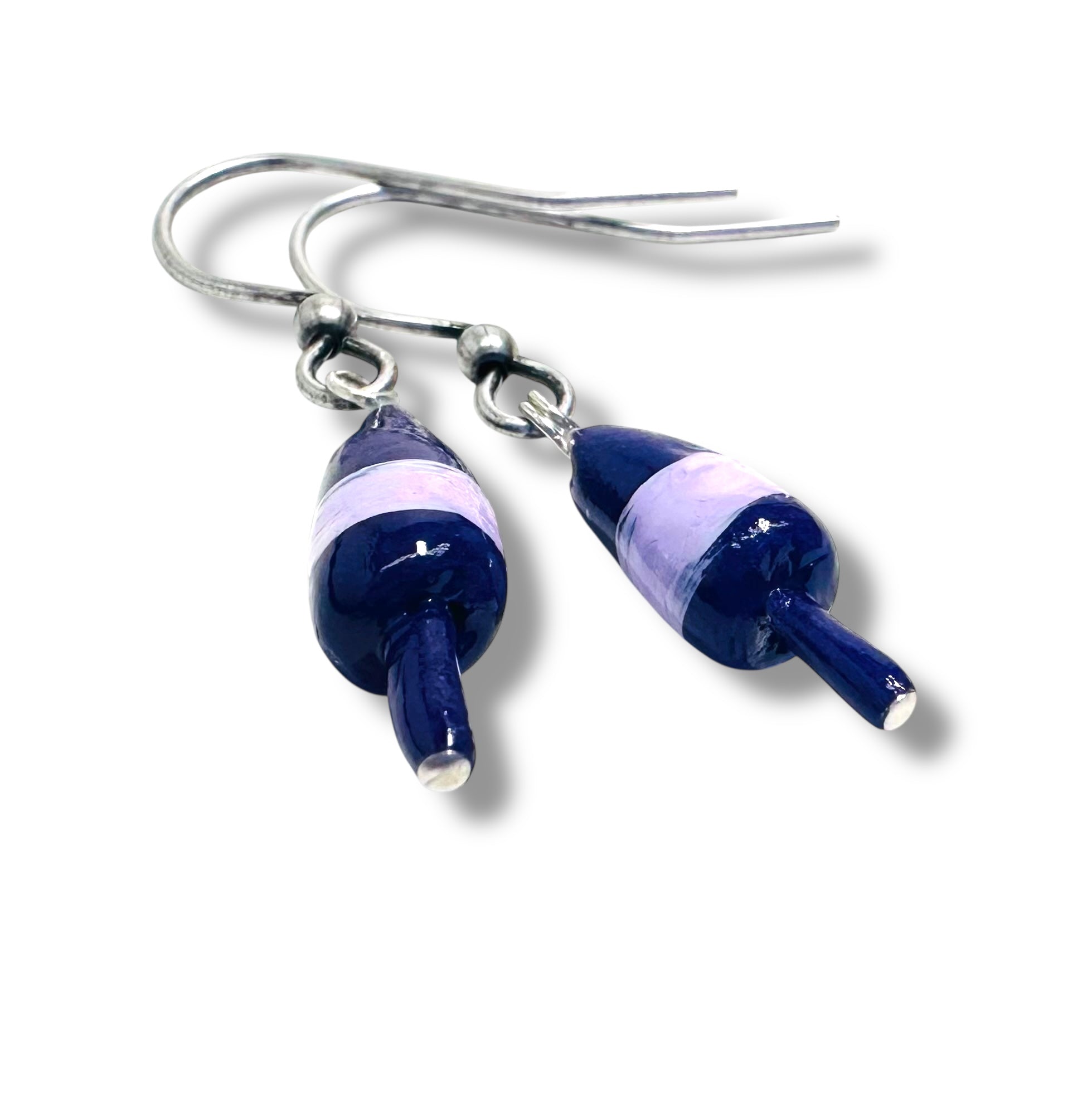 Tiny wood buoy charms set on Sterling silver ear wires.